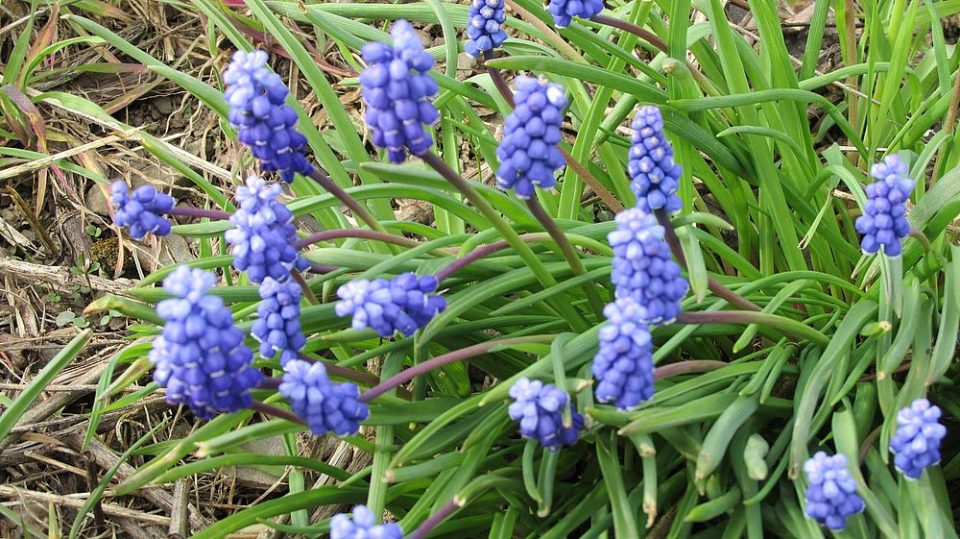 Die weiß bereifte Weinbergs-Traubenhyazinthe