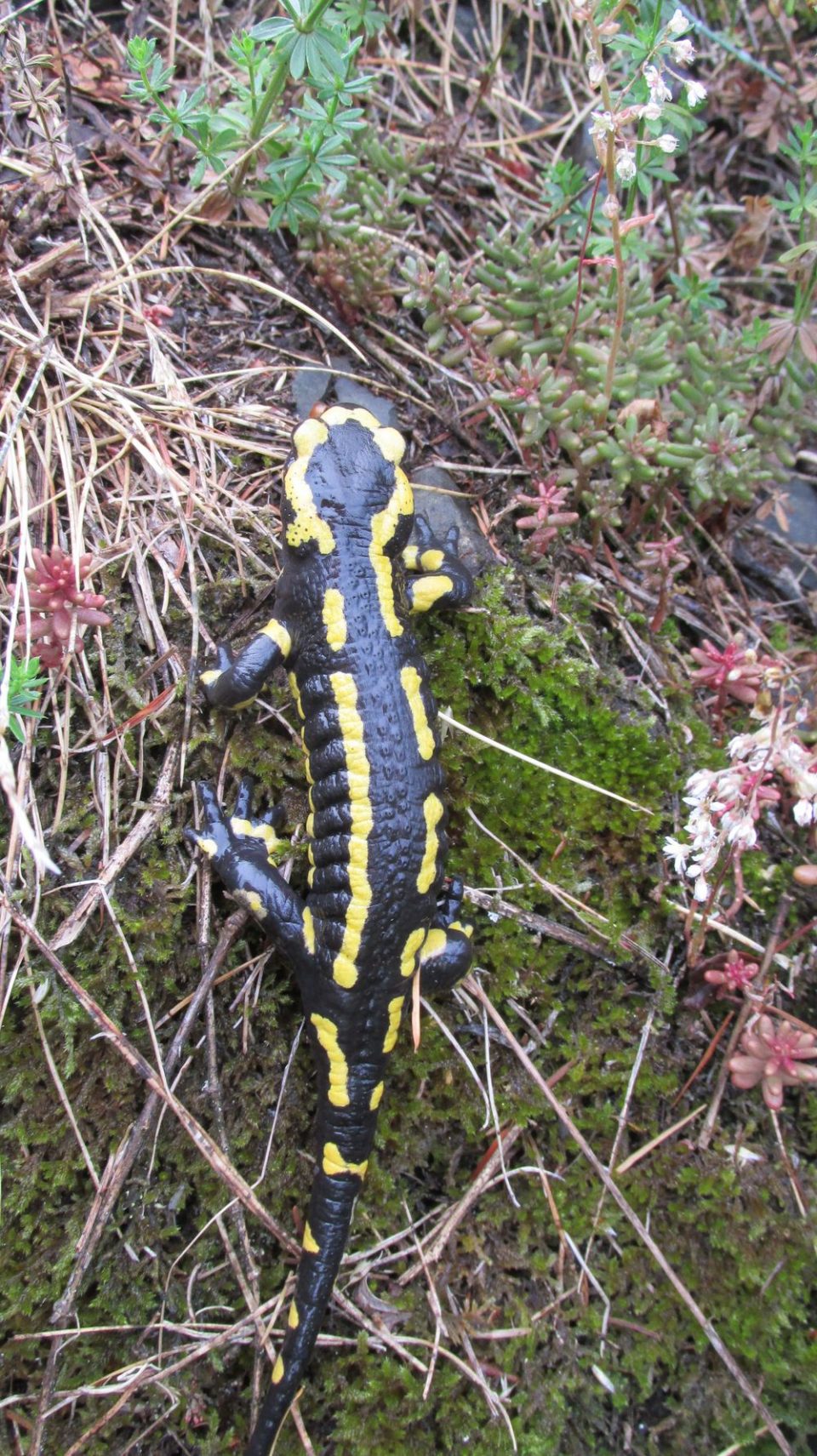 Vorheriges Bild Feuersalamander Draufsicht verkleinert Schnauze voll vom Fotoshooting – ab in den Unterschlupf