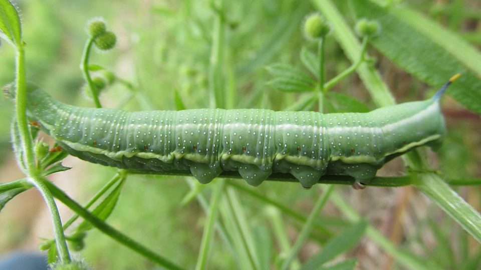 Die Raupe des Taubenschwänzchens in voller Pracht