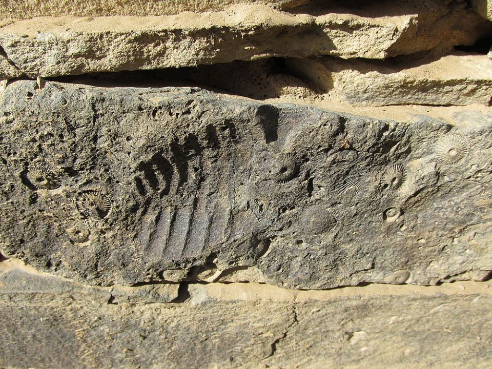 Vorheriges Bild Nächstes Bild 20 Steine erzaehlen_3222 Ein seltener Abdruck mitten in einer Trockenmauer verbaut